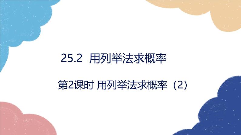 这是一份人教版九年级上册第二十五章 概率初步25.2 用列举法求概率背景图ppt课件,共15页。PPT课件主要包含了美丽的青海湖,问题1,练习1,练习2,拓展练习等内容,欢迎下载使用。
