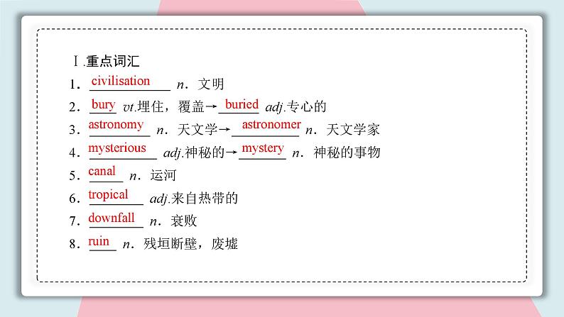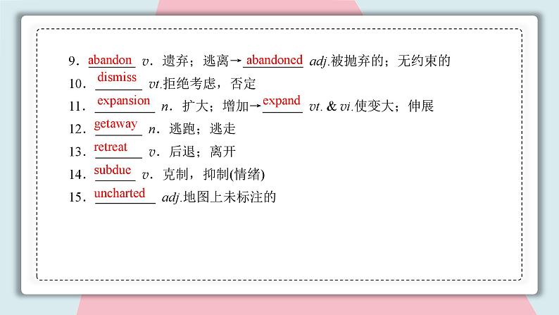 这是一份英语选择性必修 第四册Unit 5 Into the unknown复习课件ppt,共20页。