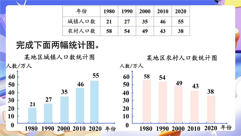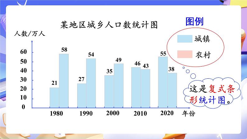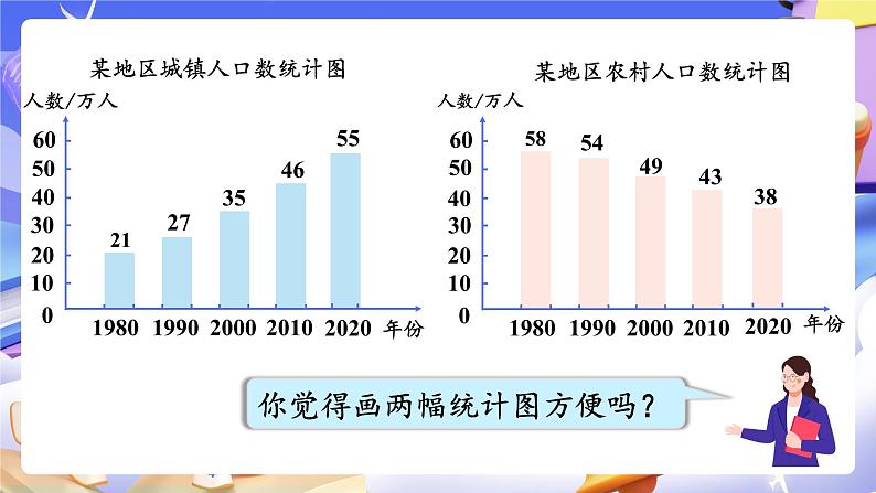 怎样简单、清晰地比较城乡相同年份人数的变化情况呢?