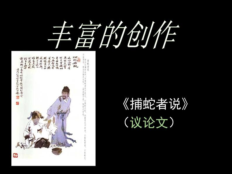 这是一份高中语文人教版 (新课标)选修《中国古代诗歌散文欣赏》第六单元 文无定格 贵在鲜活种树郭橐驼传教课内容ppt课件,共8页。