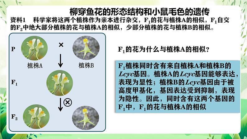 柳穿鱼花的形态结构和小鼠毛色的遗传