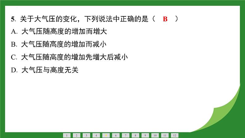 5. 关于大气压的变化,下列说法中正确的是( B )