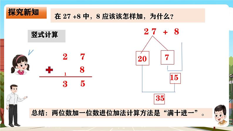 在 27 +8 中,8 应该该怎样加,为什么?