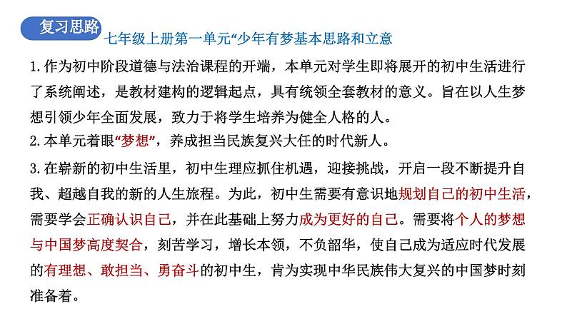 政治 (道德与法治)七年级上册(2024)第一单元 少年有梦复习ppt课件: