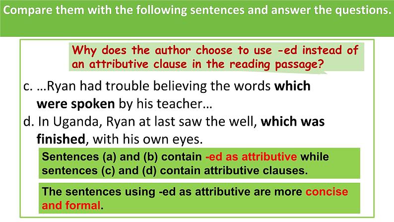 Nw lk fr mre sentences with -ed as attributive in the reading passage.