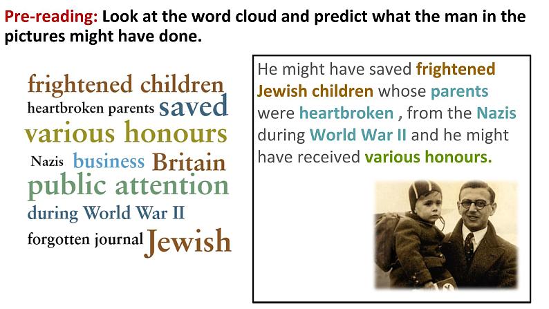 Pre-reading: Lk at the wrd clud and predict what the man in the pictures might have dne.
