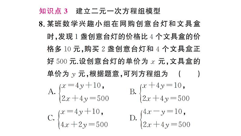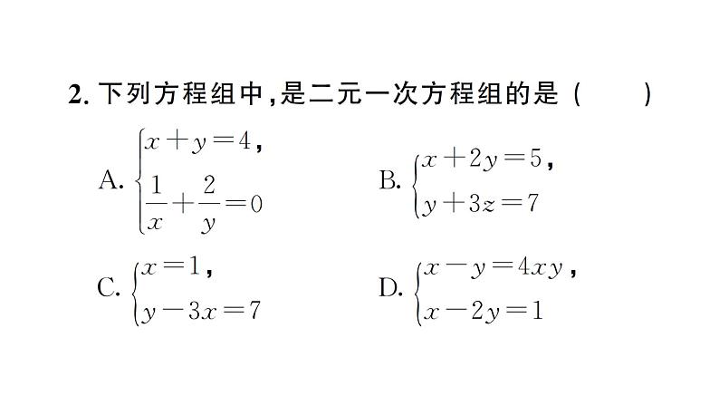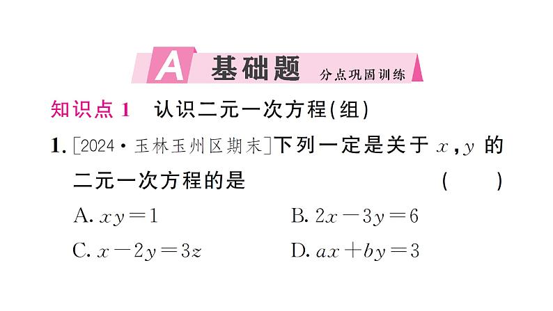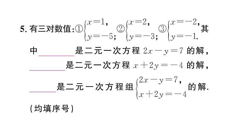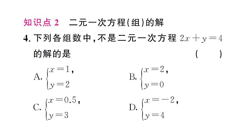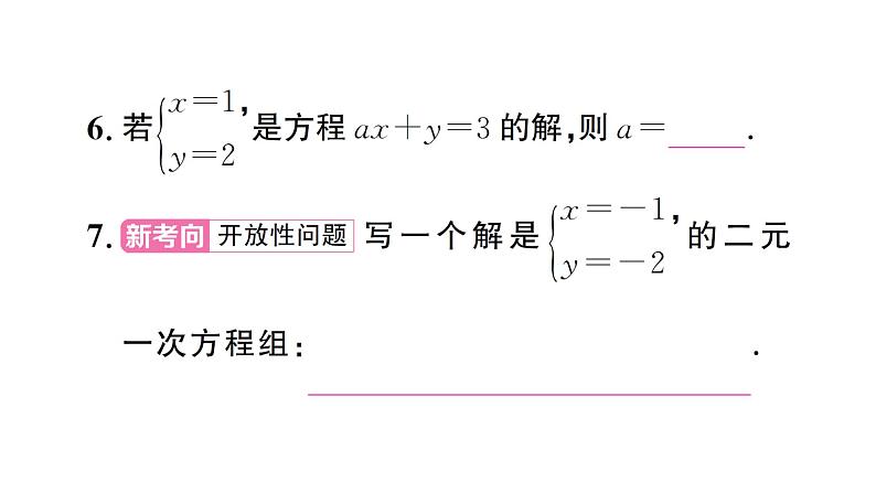 数学七年级下册(2024)10.1 二元一次方程组的概念习题ppt课件