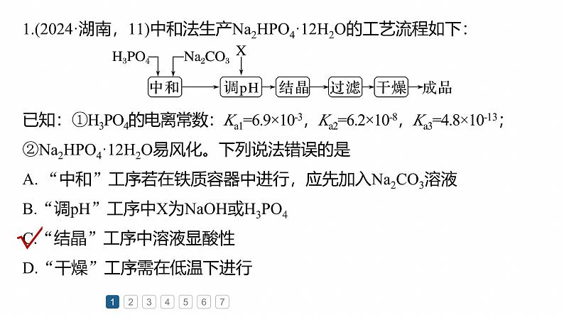 1.(2024·湖南,11)中和法生产Na2HPO4·12H2O的工艺流程如下: