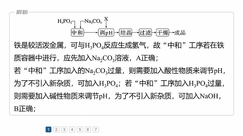 已知:①H3PO4的电离常数:Ka1=6.9×10-3,Ka2=6.2×10-8,Ka3=4.8×10-13;②Na2HPO4·12H2O易风化。下列说法错误的是A. “中和”工序若在铁质容器中进行,应先加入Na2CO3溶液B.“调pH”工序中X为NaOH或H3PO4C.“结晶”工序中溶液显酸性D.“干燥”工序需在低温下进行