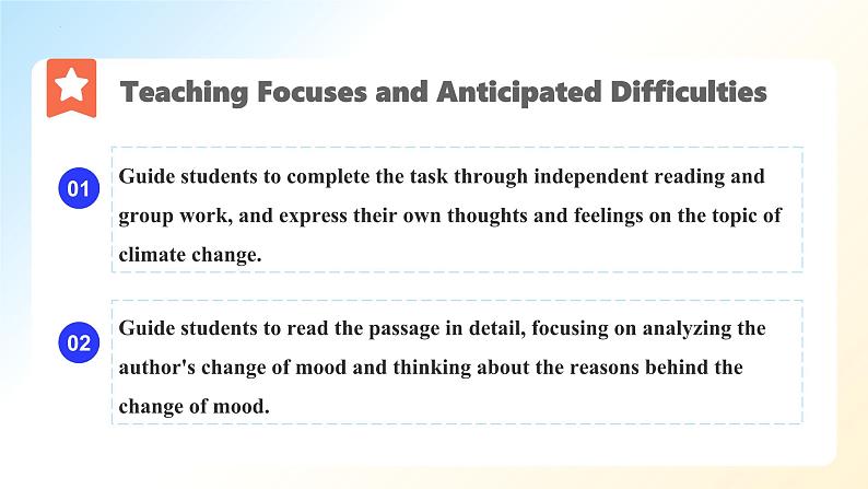 Guide students t read the passage in detail, fcusing n analyzing the authr's change f md and thinking abut the reasns behind the change f md.
