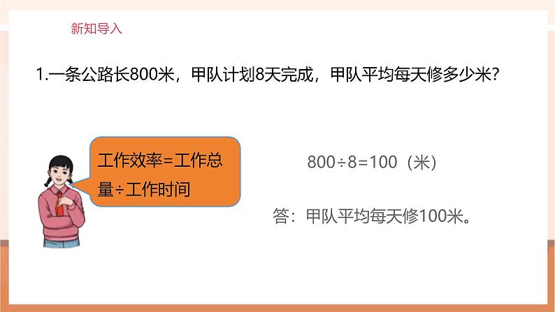 1.一条公路长800米,甲队计划8天完成,甲队平均每天修多少米?