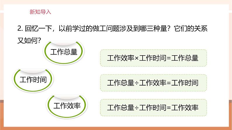 2. 回忆一下,以前学过的做工问题涉及到哪三种量?它们的关系又如何?