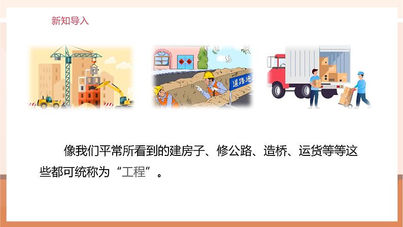 像我们平常所看到的建房子、修公路、造桥、运货等等这些都可统称为“工程”。