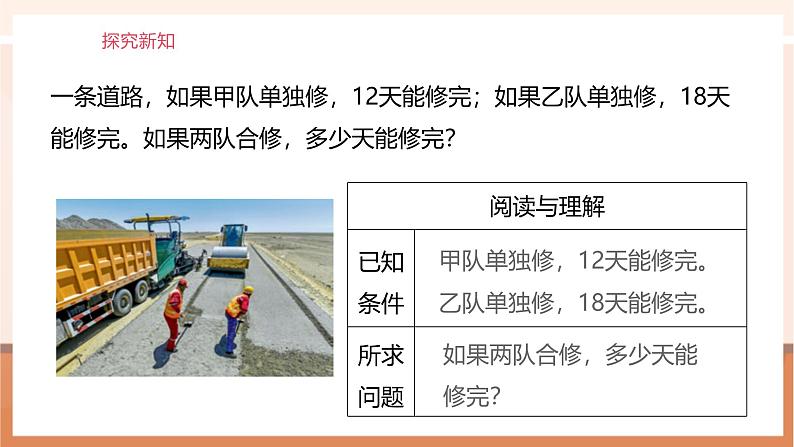 让学生经历用“假设法”解决分数工程问题的过程,理解并掌握把工作总量看作单位“1”的分数工程应用题的基本特点、解题思路和解题方法。