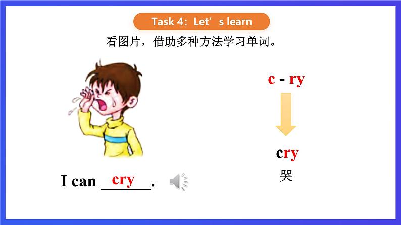 1.能够借助多种方法,在语境中学会四个单词。2.能够读懂课本P8的内容: -- Let’s play a game. Are yu ready? -- ______, please. -- Dn’t ______, please.3.能够完成课本P9的听力任务。4.能够找出课本P9的单词的共同特点。