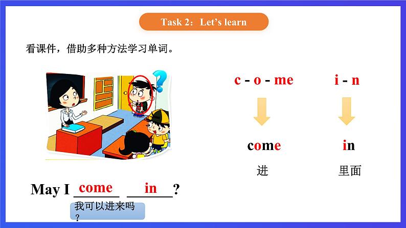 -- Wh’s nt here tday?-- Mama is nt here.-- May I cme in?-- Cme in, please.-- Mama is late tday.