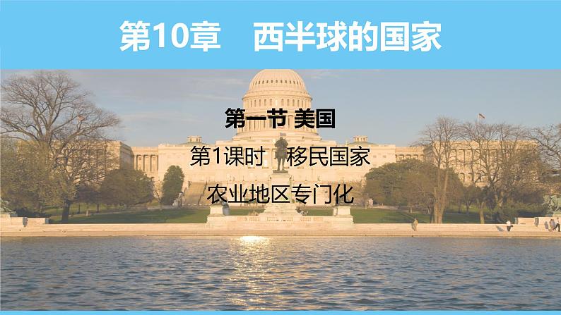 这是一份初中人教版(2024)第十章 西半球的国家第一节 美国课前预习ppt课件,共42页。PPT课件主要包含了移民国家,领土范围,阿拉斯加州,夏威夷,地理位置,活动讨论分析,美国的人口,美国华人华侨,美国中央太平洋铁路,农业地区专门化等内容,欢迎下载使用。