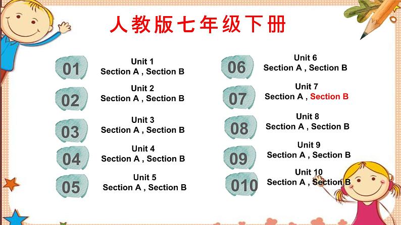人教版2024七年级下册英语U7 B单词 课件第1页