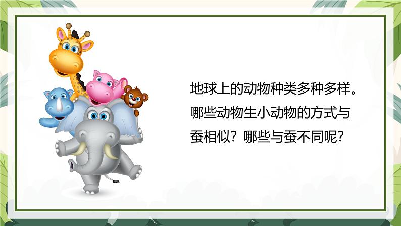 地球上的动物种类多种多样。哪些动物生小动物的方式与蚕相似?哪些与蚕不同呢?