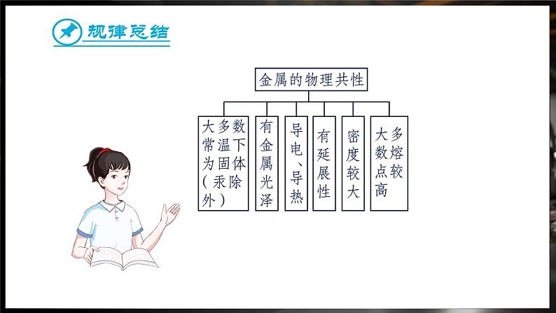 这是一份初中化学人教版(2024)九年级下册(2024)第八单元 金属和金属材料课题1 金属材料说课ppt课件,文件包含第1课时常见金属的物理性质pptx、金属的密度mp4、金属的导电性mp4、金属的熔点mp4、金属的颜色与光泽mp4、青铜时代与铁器时代mp4等6份课件配套教学资源,其中PPT共26页, 欢迎下载使用。