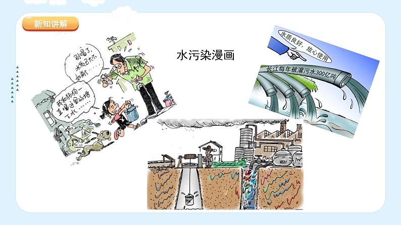 这是一份小学美术人美版(2024)四年级下册7.生命之源——水图文ppt课件,共27页。PPT课件主要包含了世界水资源状况,中国水资源现状,石油污染,水污染漫画,节水小窍门,文章标题,手抄报的版面组成,栏目标题,手抄报的组成部分,观看拓展视频等内容,欢迎下载使用。