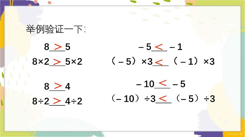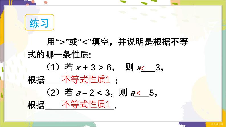 用“>”或“ 6, 则 x____3,根据___________________; (2)若 a – 2 < 3,则 a____5,根据___________________.