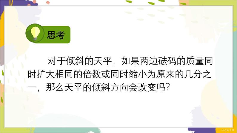 对于倾斜的天平,如果两边砝码的质量同时扩大相同的倍数或同时缩小为原来的几分之一,那么天平的倾斜方向会改变吗?