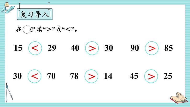 这是一份西师大版(2024)一年级下册(2024)第三单元 100以内数的认识数学万花筒 生活中的100(百)教课内容ppt课件,共19页。PPT课件主要包含了试一试,<41等内容,欢迎下载使用。