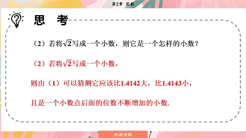 这是一份初中数学湘教版(2024)七年级下册(2024)2.1 平方根多媒体教学课件ppt,文件包含212无理数pptx、212无理数doc等2份课件配套教学资源,其中PPT共17页, 欢迎下载使用。
