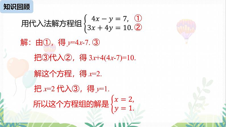 初中数学人教版(2024)七年级下册(2024)10.2.1 代入消元法图文课件ppt