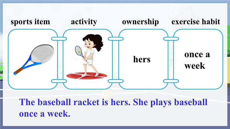 Emma: There is a _________ bat here. Is it yurs? Jim: N, it isn’t mine. Is it Ella’s? Emma: N, hers is ________. Jim: Maybe it’s Yaming’s. Emma: Hi, Yaming! Is this yur bat?Yaming: Oh yes, it’s mine. Thanks! Emma: ________. Yur bat lks well-used. D yu play ften?