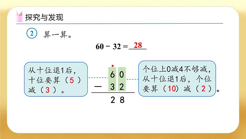 这是一份小学数学人教版(2024)一年级下册(2024)笔算减法优质备课习题ppt课件,文件包含备课无忧人教版数学一年级下册-54笔算减法2教学课件pptx、备课无忧人教版数学一年级下册-54笔算减法2教学设计docx、备课无忧人教版数学一年级下册-54笔算减法2习题有答案docx、备课无忧人教版数学一年级下册-54笔算减法2学案设计docx等4份课件配套教学资源,其中PPT共26页, 欢迎下载使用。