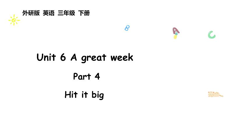 这是一份外研版(三起)2024三年级下册(2024)Unit 6 A great week图文ppt课件,文件包含外研版三下Unit6Part5pptx、Whatdoyoudoonweekendsmp4、weeksongmp4等3份课件配套教学资源,其中PPT共29页, 欢迎下载使用。