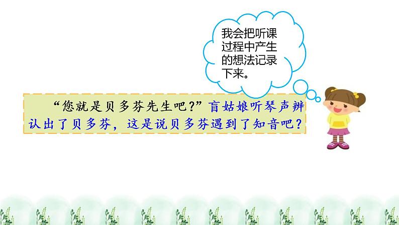 “您就是贝多芬先生吧?”盲姑娘听琴声辨认出了贝多芬,这是说贝多芬遇到了知音吧?