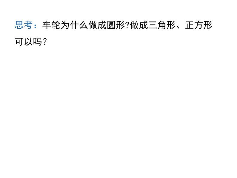 思考:车轮为什么做成圆形?做成三角形、正方形可以吗?