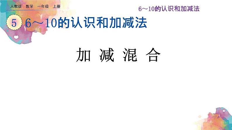 小学数学人教版一年级上册加减混合教案配套ppt课件: 这是一份小学数学人教版一年级上册加减混合教案配套ppt课件,共33页。PPT课件主要包含了算一算说一说,+3+4=,-2-4=,小组讨论,+3-2=,加减混合算式,-2=5,+3-2=5,+3-2,-2+3=等内容,欢迎下载使用。