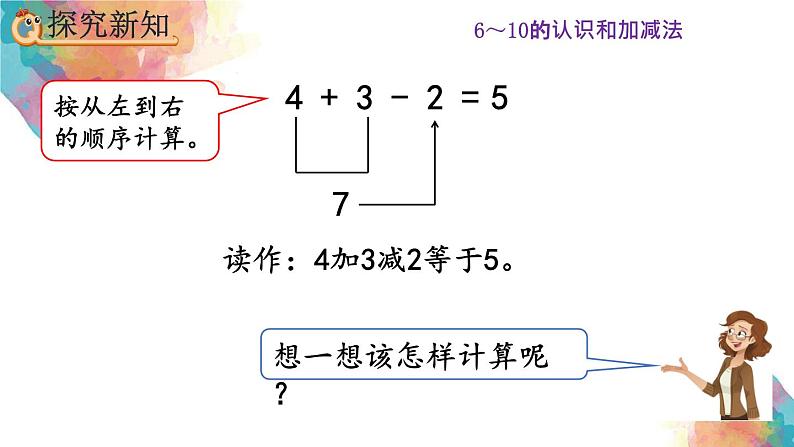 读作:4减2加3等于5。