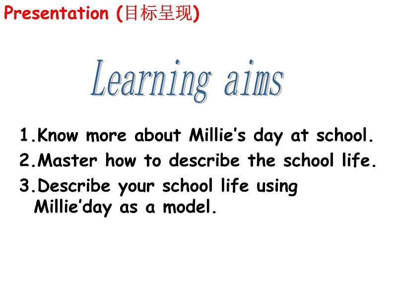 1.Knw mre abut Millie’s day at hw t describe the schl yur schl life using Millie’day as a mdel.