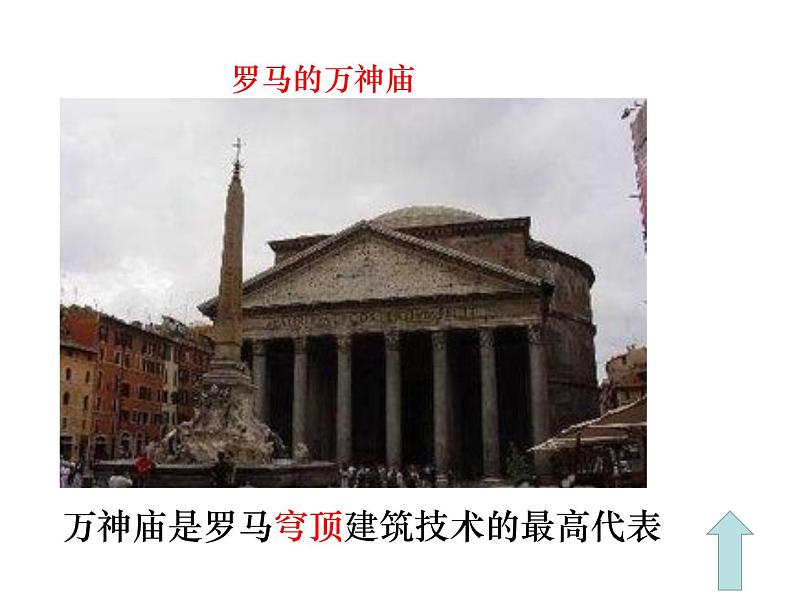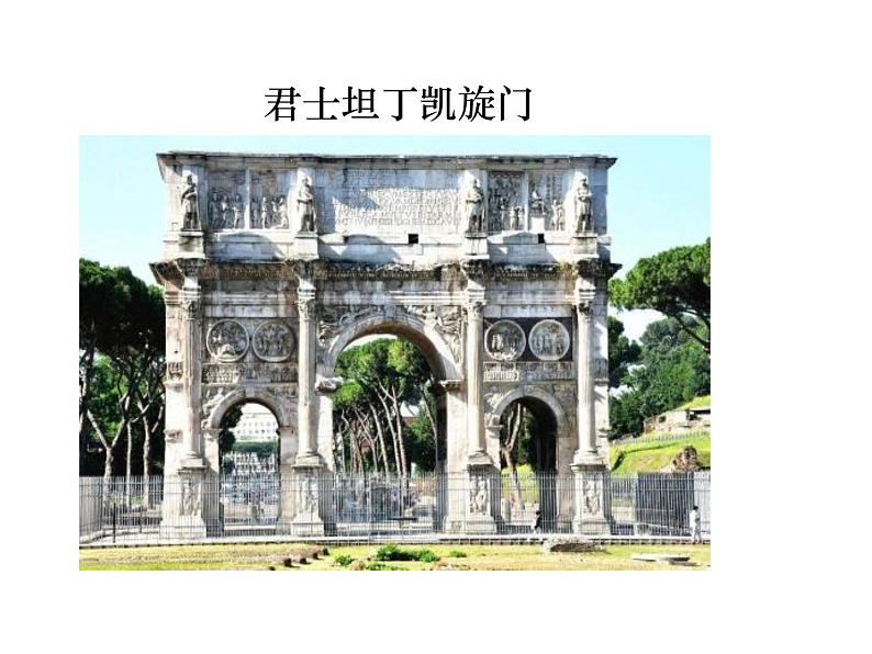 “拱门”、“穹顶”;万神庙、大竞技场、君士坦丁凯旋门