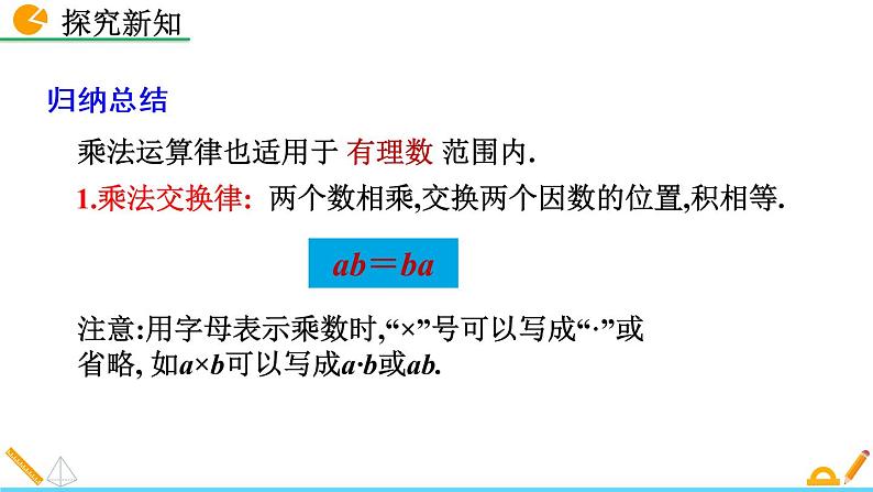注意:用字母表示乘数时,“×”号可以写成“·”或省略, 如a×b可以写成a·b或ab.