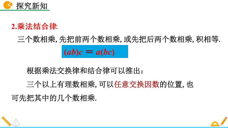 三个数相乘,先把前两个数相乘,或先把后两个数相乘,积相等.