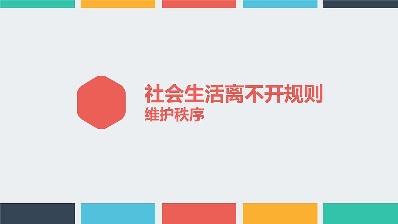 这是一份初中政治思品维护秩序多媒体教学课件ppt,共23页。PPT课件主要包含了学习目标,情景导入,社会生活有秩序,运用你的经验,社会管理秩序,生产秩序,交通秩序,公共场所秩序,社会秩序的含义和种类,探究活动一等内容,欢迎下载使用。