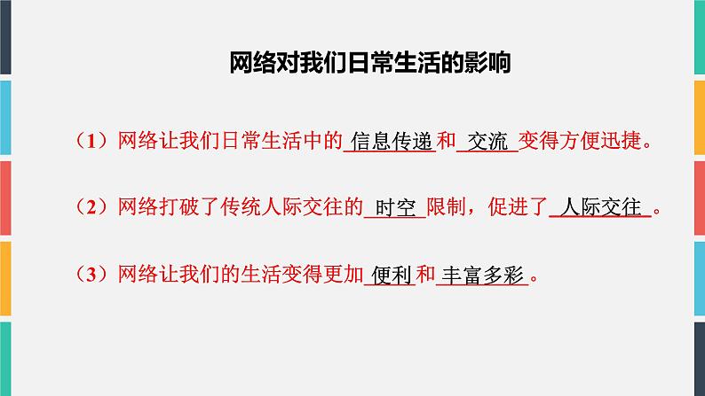 (1)网络让我们日常生活中的_________和______变得方便迅捷。
