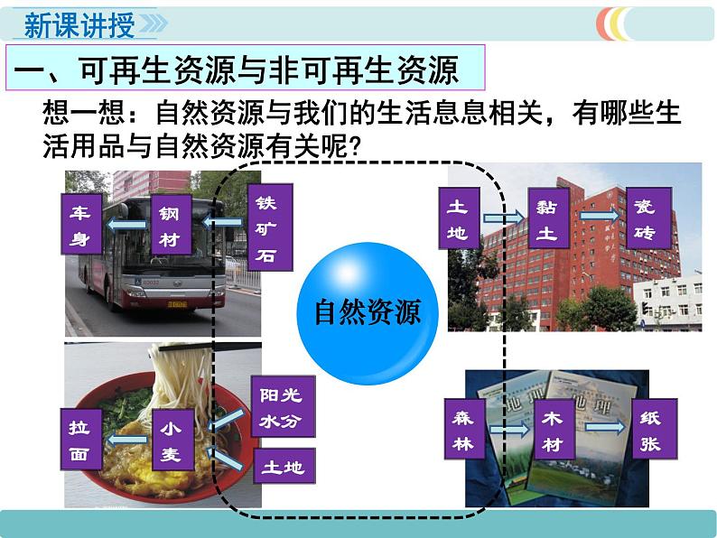 想一想:自然资源与我们的生活息息相关,有哪些生活用品与自然资源有关呢?
