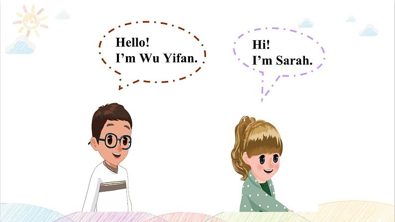 S1: Hell, I’m _________.S2: Hi, I’m ___________.S1: Gdbye! S2: Bye!