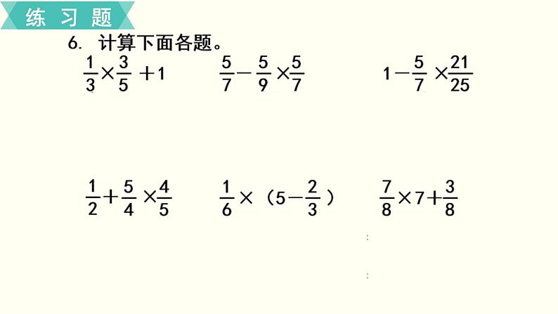 这是一份小学数学人教版六年级上册1 分数乘法优秀ppt课件,共18页。PPT课件主要包含了计算下面各题,12米,2千克,6300千米等内容,欢迎下载使用。