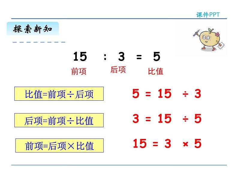 小学人教版比和比例复习ppt课件: 这是一份小学人教版比和比例复习ppt课件,共17页。PPT课件主要包含了忆一忆,等量代换,这就是等量代换,求图形代表的数等内容,欢迎下载使用。