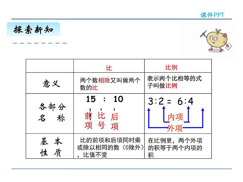 比的前项和后项同时乘或除以相同的数(0除外),比值不变。这叫做比的基本性质。