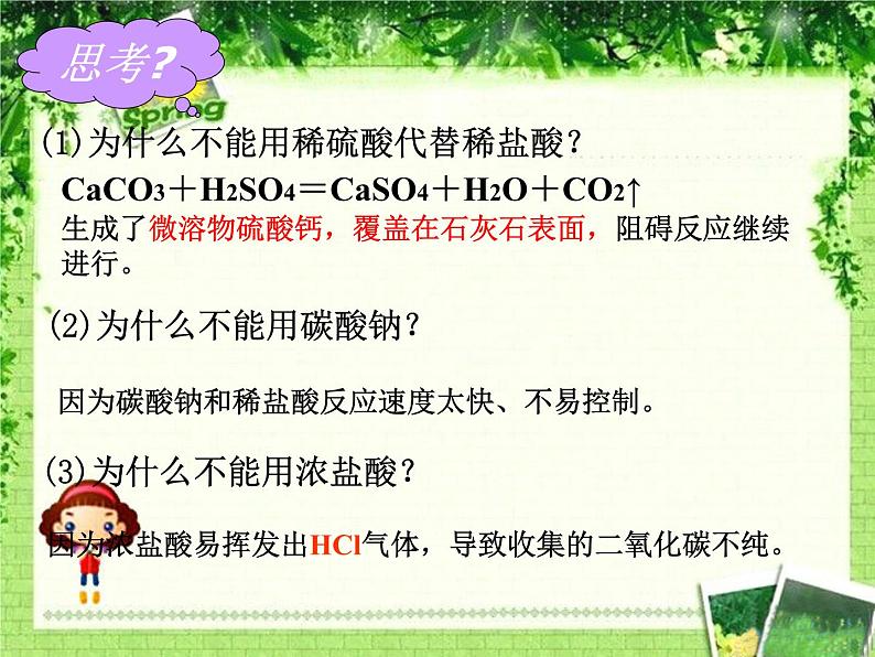 (1)为什么不能用稀硫酸代替稀盐酸?