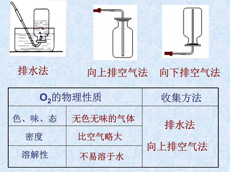 排水法(不易溶于水、不与水发生反应)